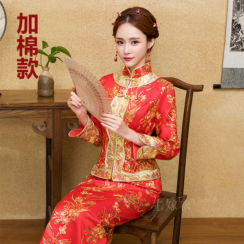 • 新娘敬酒服旗袍秀禾服2017新款中式婚纱礼服红色长款新娘结婚