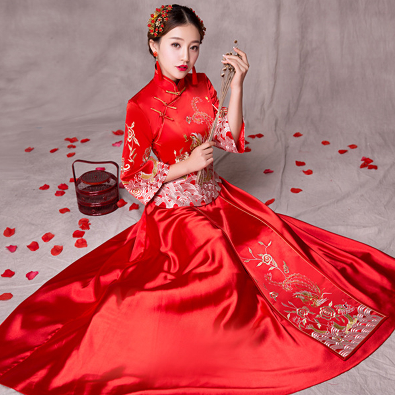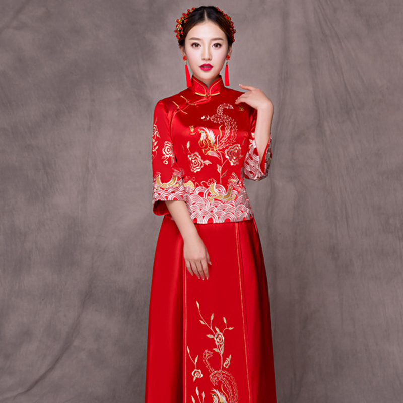 • 2017春季新娘秀禾服 新娘龙凤褂修身喜娘礼服中式旗袍435