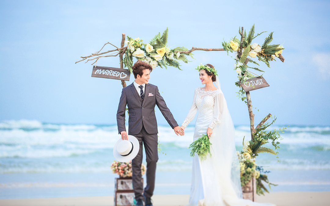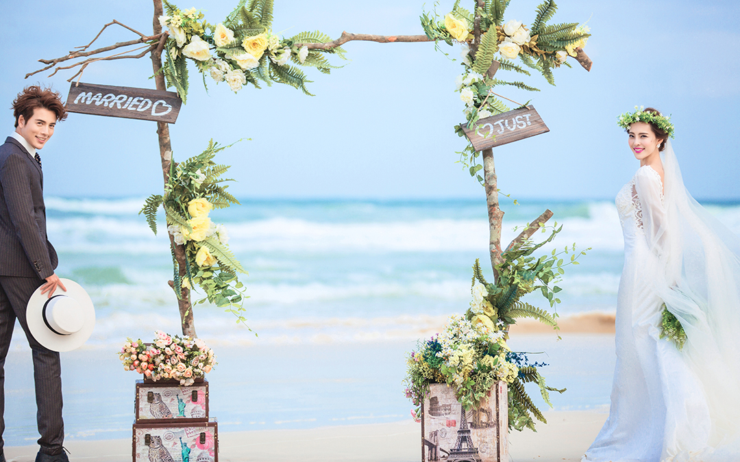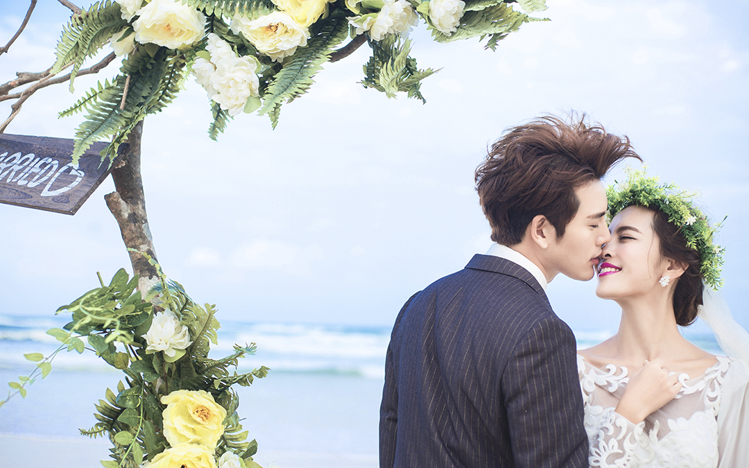 米娜视觉婚纱摄影--浪漫海景--花的嫁衣