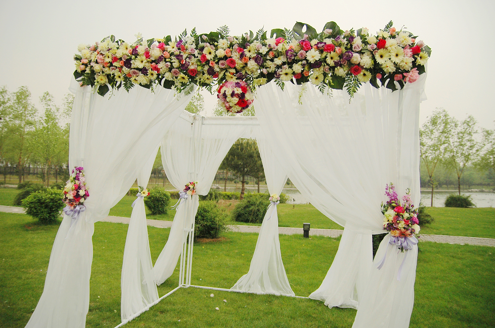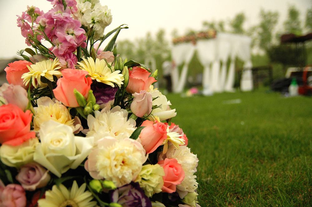 浪漫清新的白红色系草坪婚礼