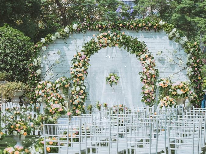 夏日小型户外草坪花园婚礼