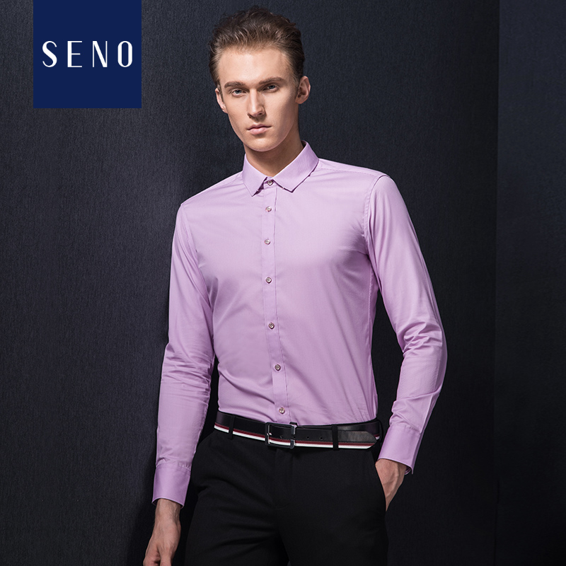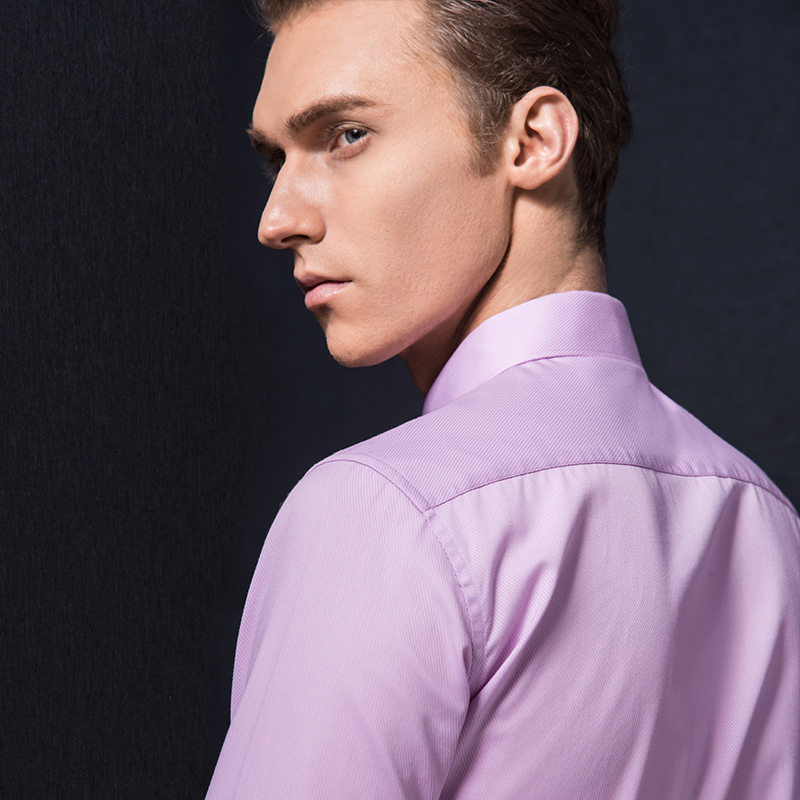 • 新郎婚礼浅紫色男士结婚衬衫 纯色免烫韩版修身商务长袖衬衣