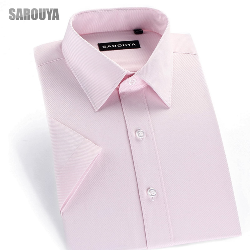 • 夏季男士白衬衫男短袖免烫修身衬衣纯色半袖寸衫商务青年