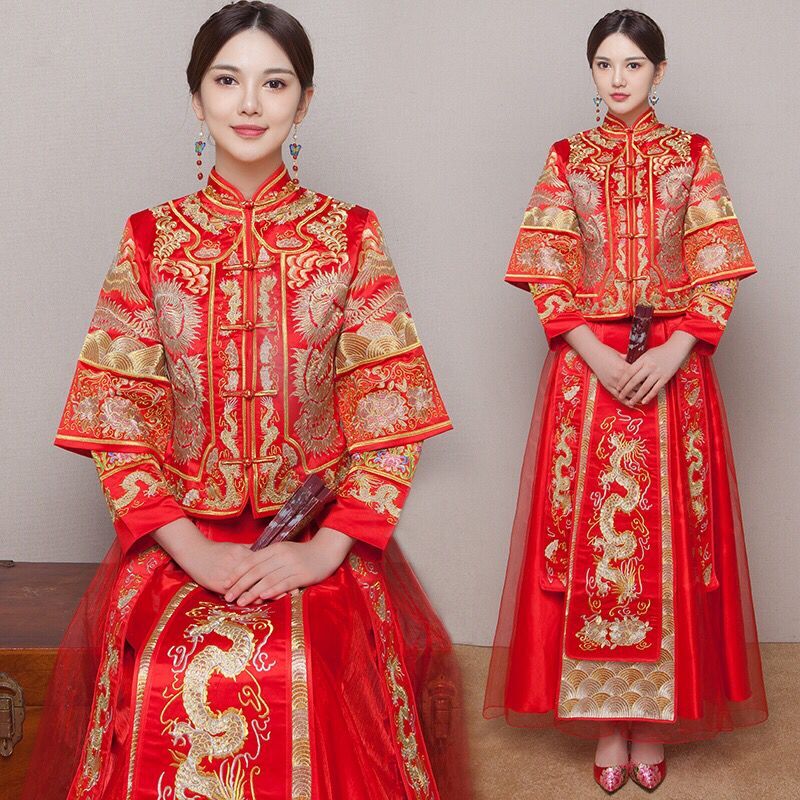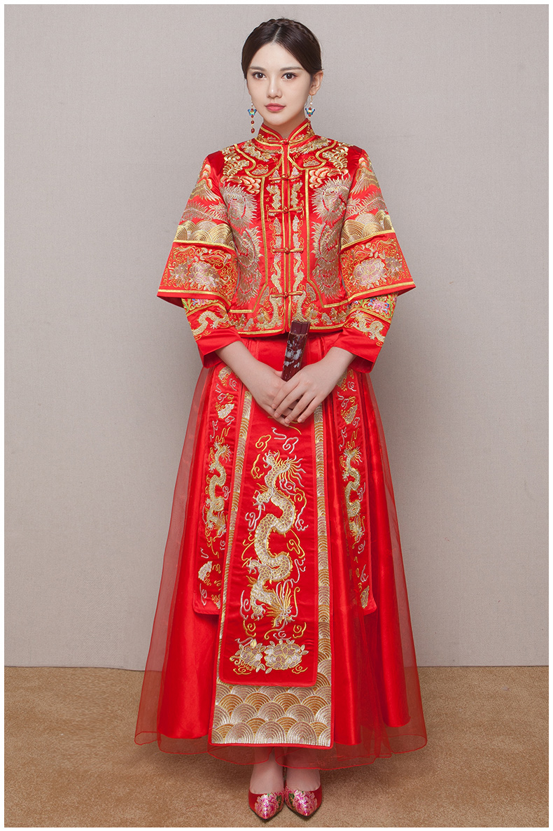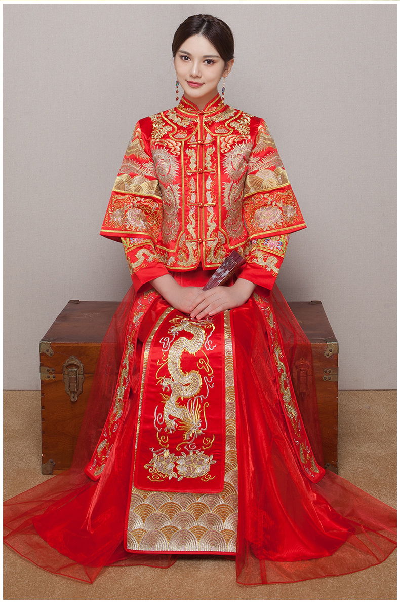 • 秀禾服龙凤褂中式新娘礼服嫁衣红色敬酒服结婚旗袍2017新款