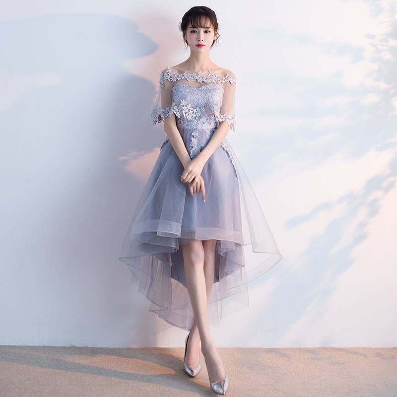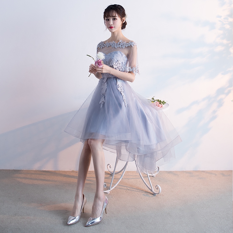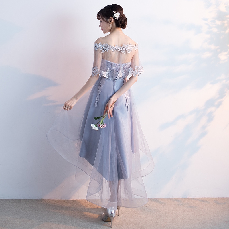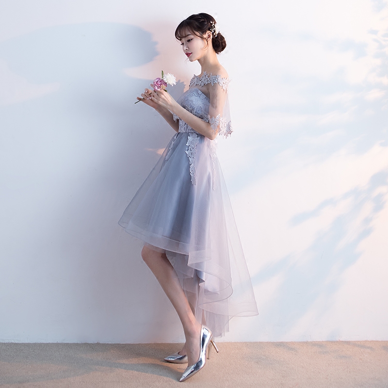 • 宴会晚礼服2017新款一字肩前短后长伴娘服显瘦毕业小礼服连衣