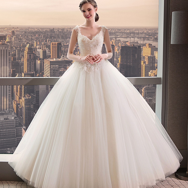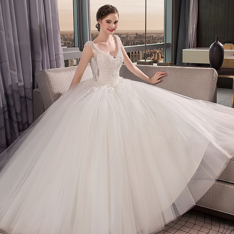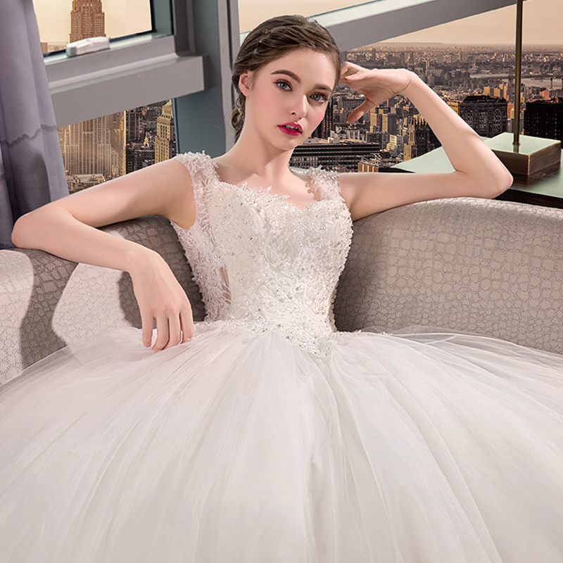 • 新娘结婚韩版宫廷齐地公主一字肩婚纱2017新款奢华长拖尾75