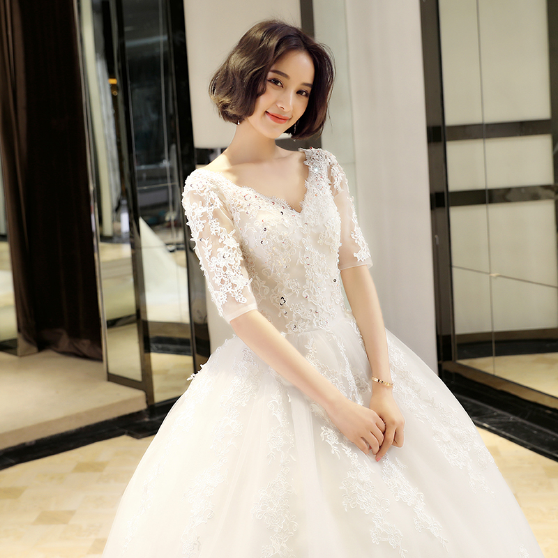 2017新款韩版孕妇v领显瘦婚纱礼服新娘结婚梦幻大码大拖尾女