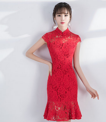 • 2017新娘旗袍新款鱼尾连衣裙时尚淑女改良小清新