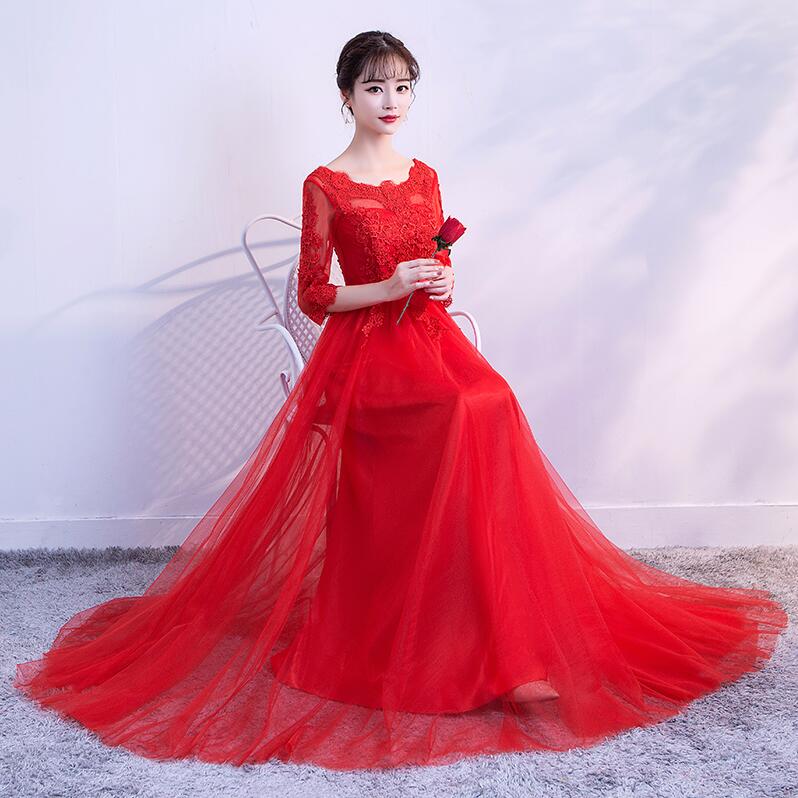 • 孕妇敬酒服新娘长款2017新款长袖结婚礼服订婚修身高腰大码女