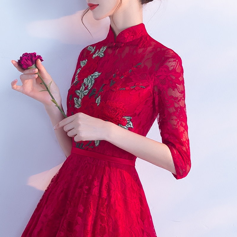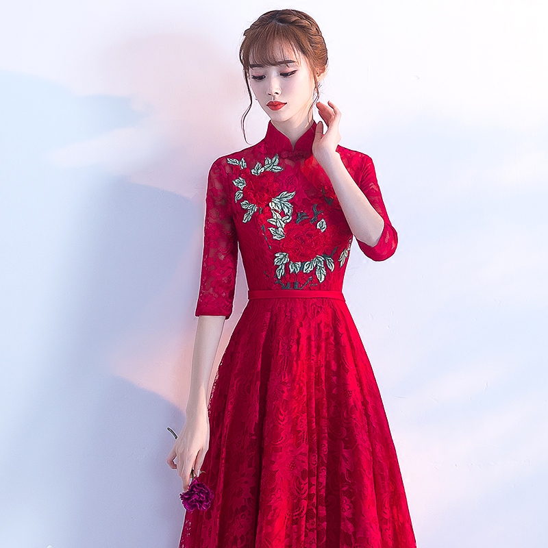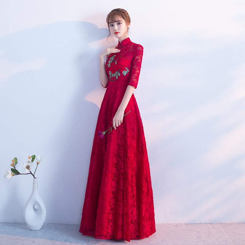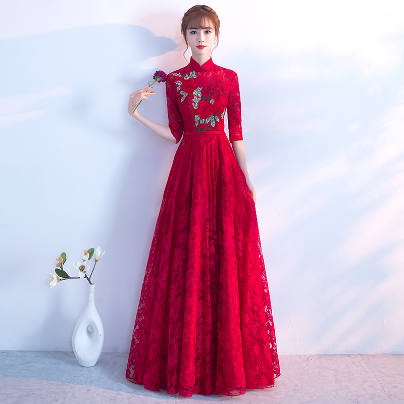 • 新娘敬酒服红色2017新款秋冬季长袖婚礼晚礼服女修身显瘦结婚