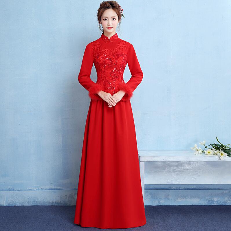 加厚保暖!新娘敬酒服旗袍新款冬季长袖长款中式红色结婚礼