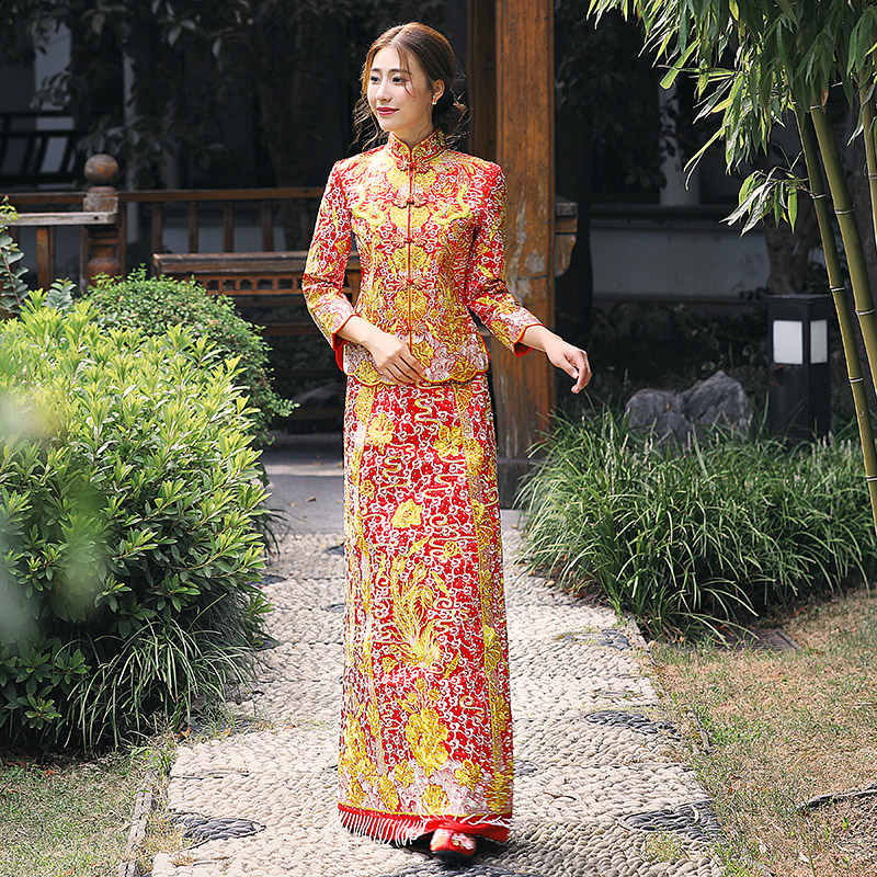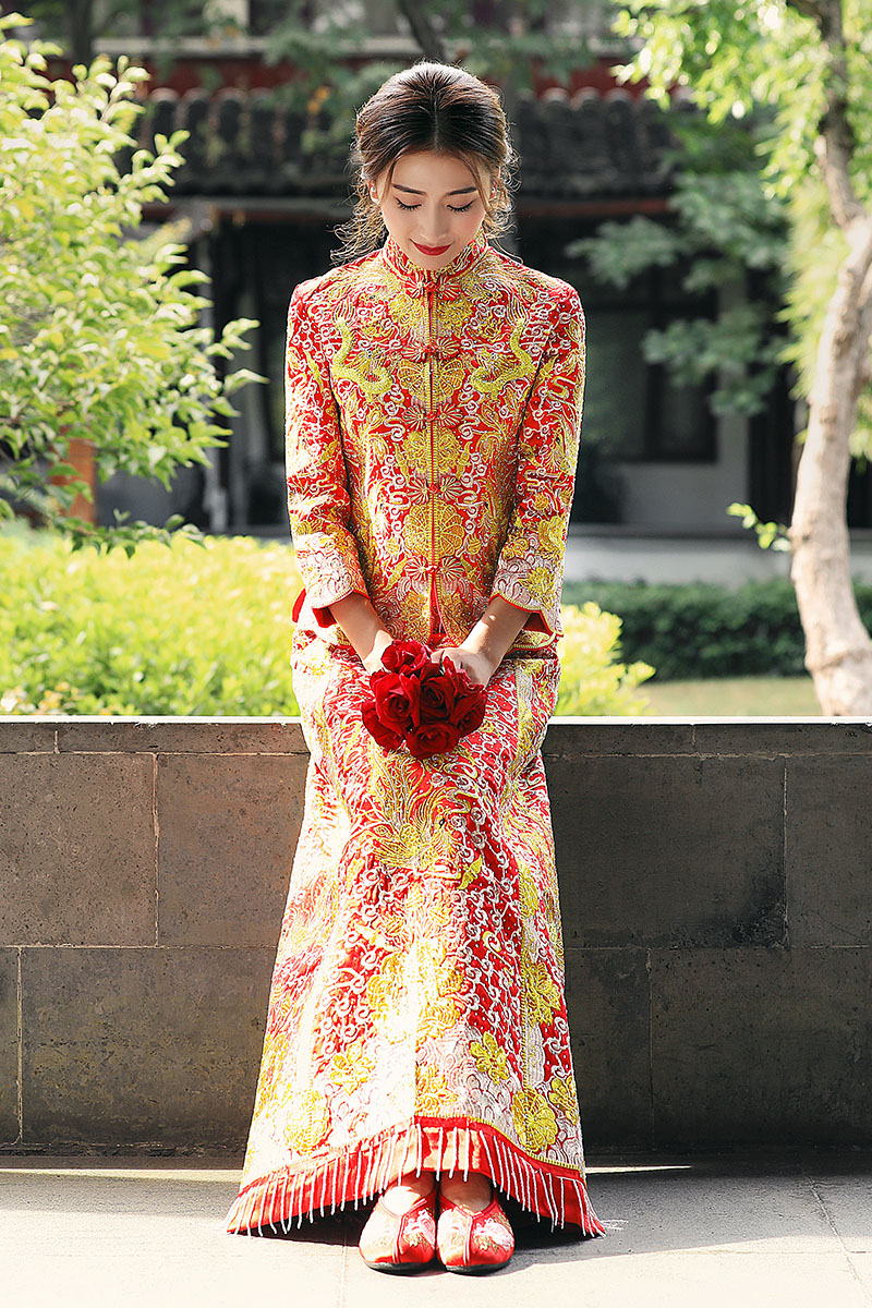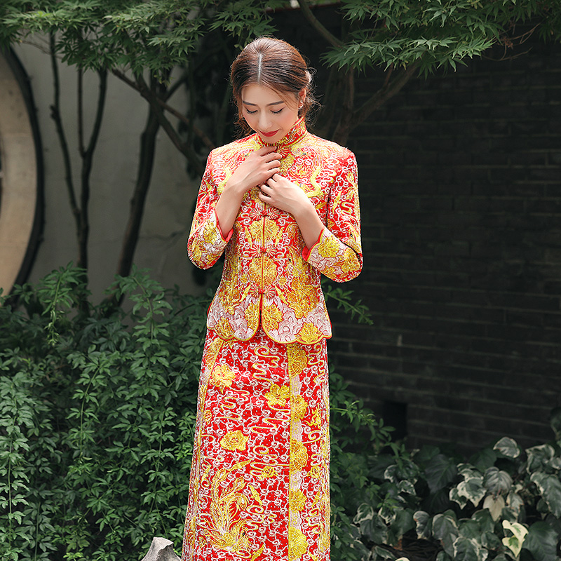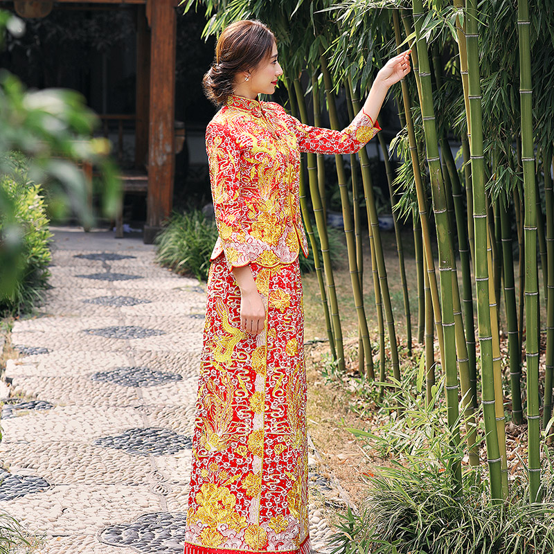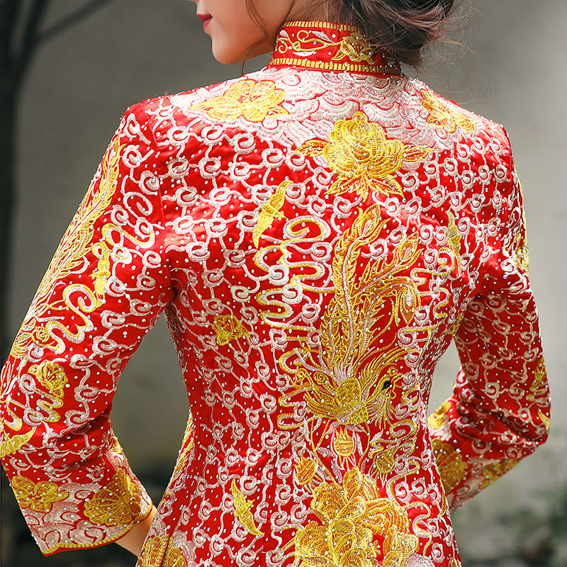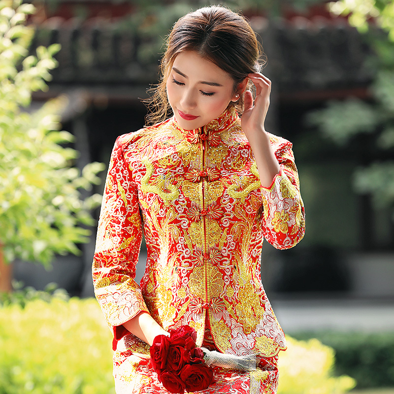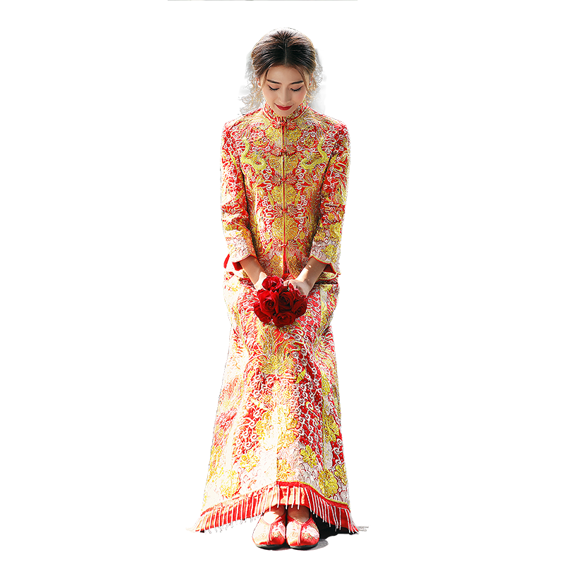 • 明星同款龙凤褂中式礼服点钻古典嫁衣修身收腰