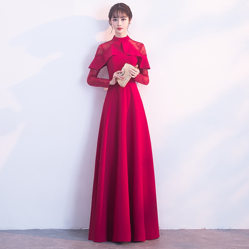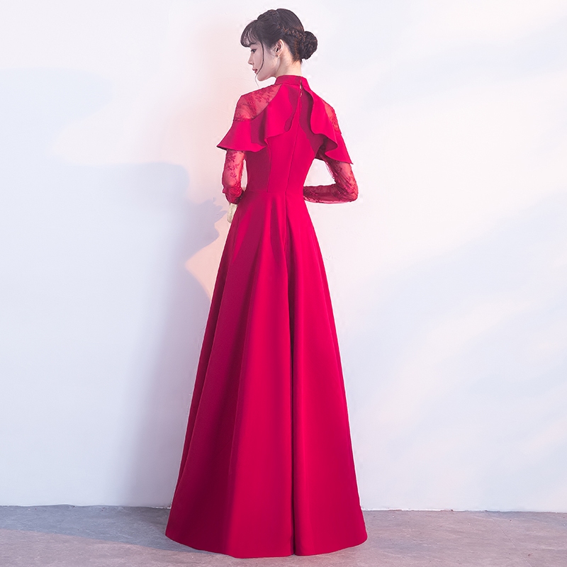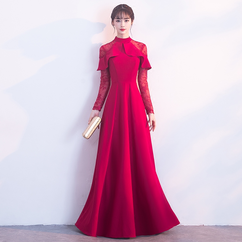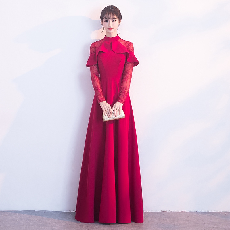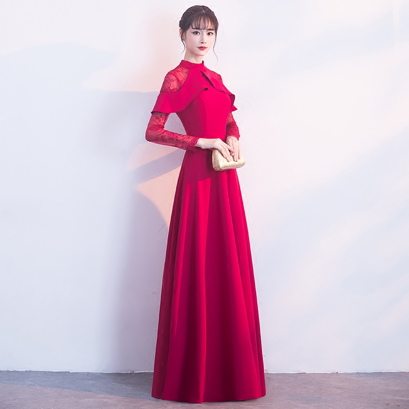 • 新娘敬酒服新款秋冬季长袖红色长款结婚回门宴会晚礼服长裙女