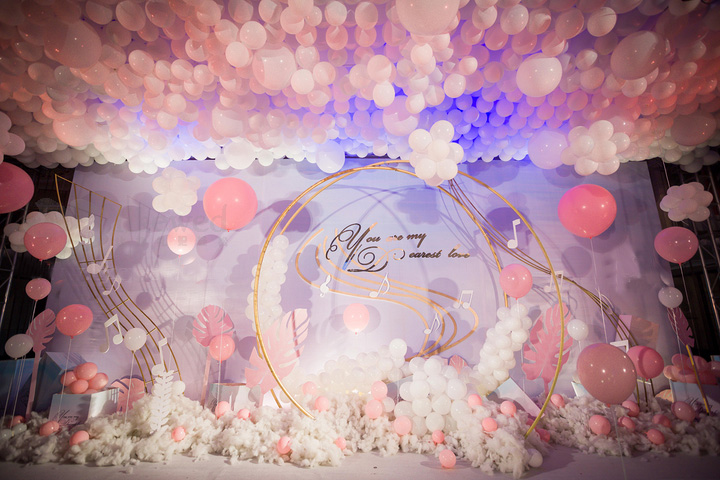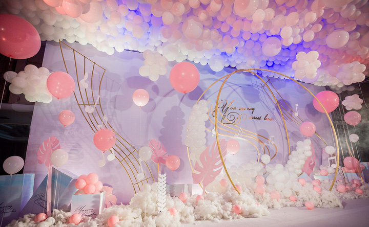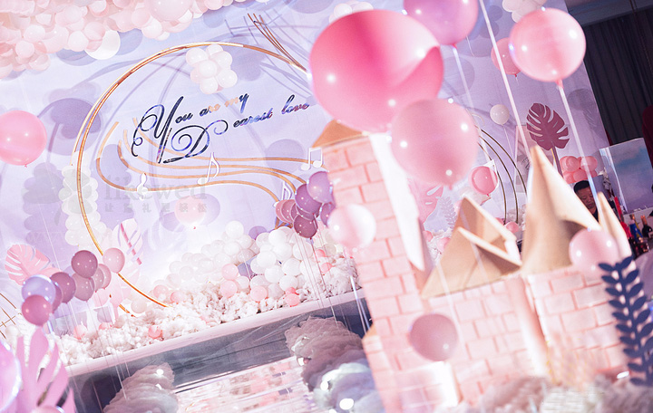 粉红色城堡气球——室内婚礼