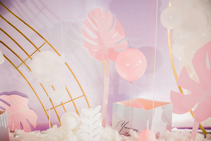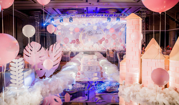 • 粉红色城堡气球——室内婚礼