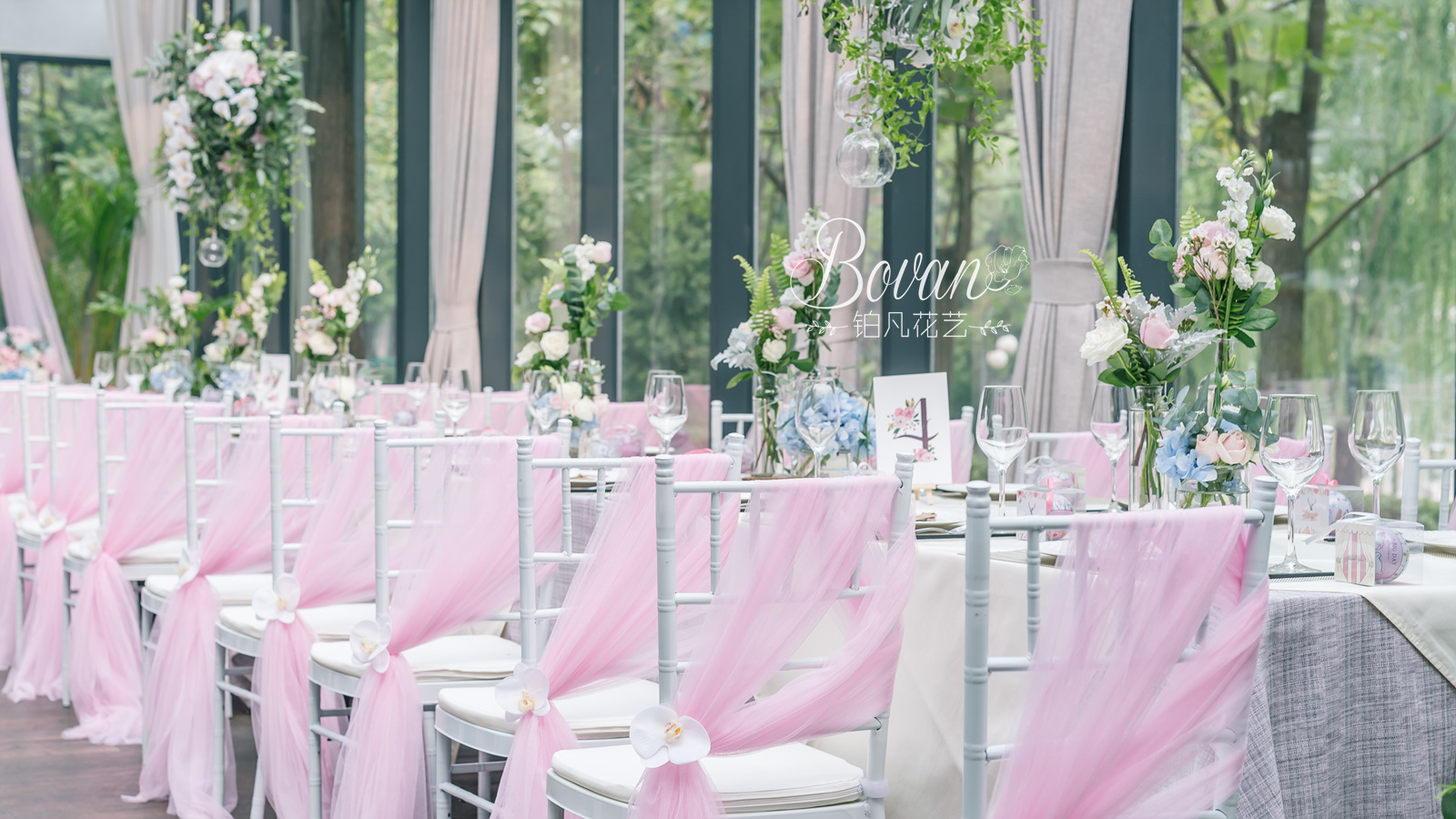 铂凡花艺 | 罗兰湖粉蓝色系清新婚礼