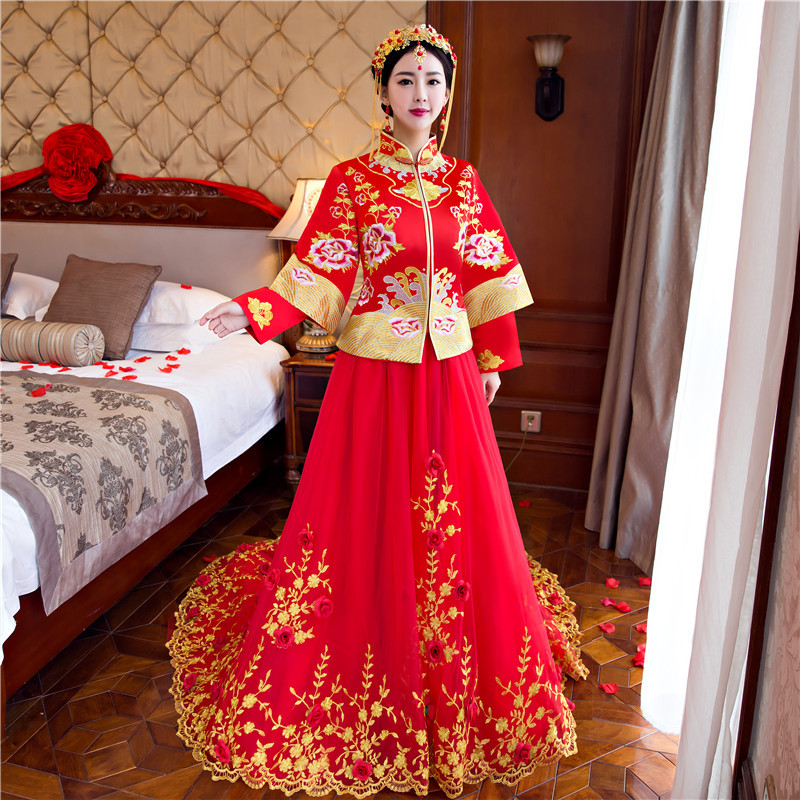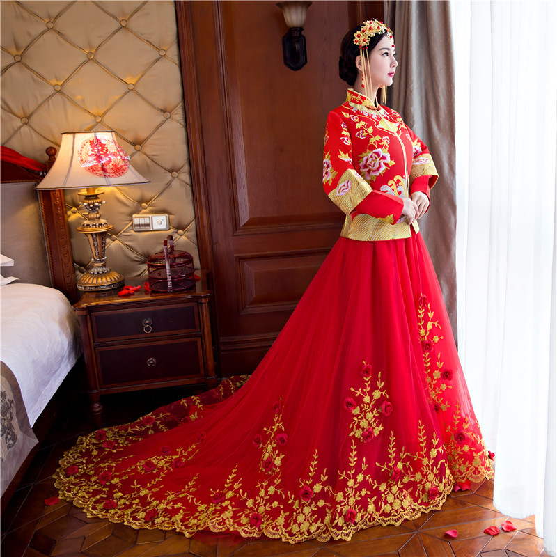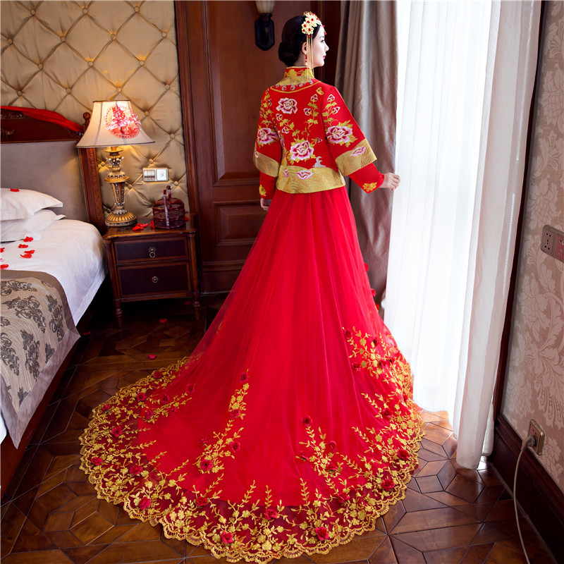 2017新款婚纱礼服秀禾服新娘 中式结婚礼服敬酒服古装女 拖