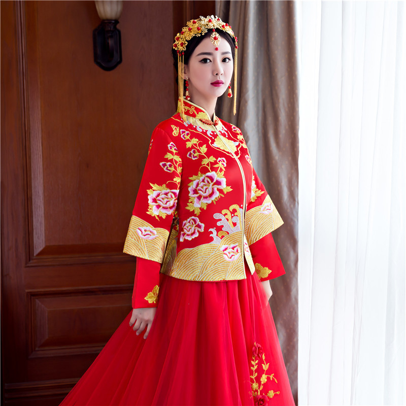 • 2017新款婚纱礼服秀禾服新娘 中式结婚礼服敬酒服古装女 拖