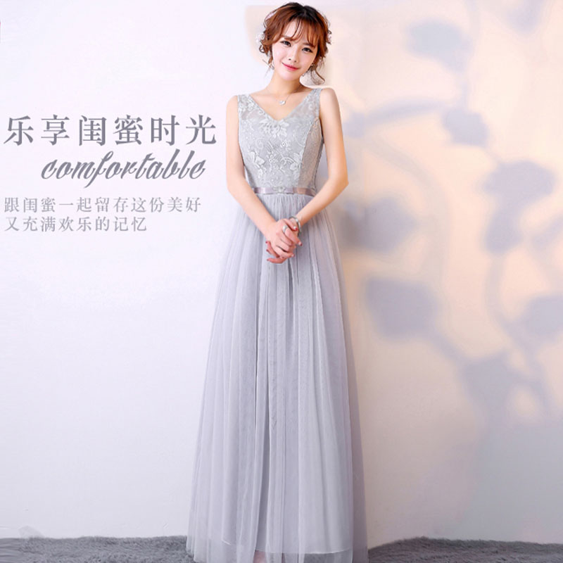 • 伴娘服2017新款韩版长款伴娘礼服姐妹团显瘦晚礼服