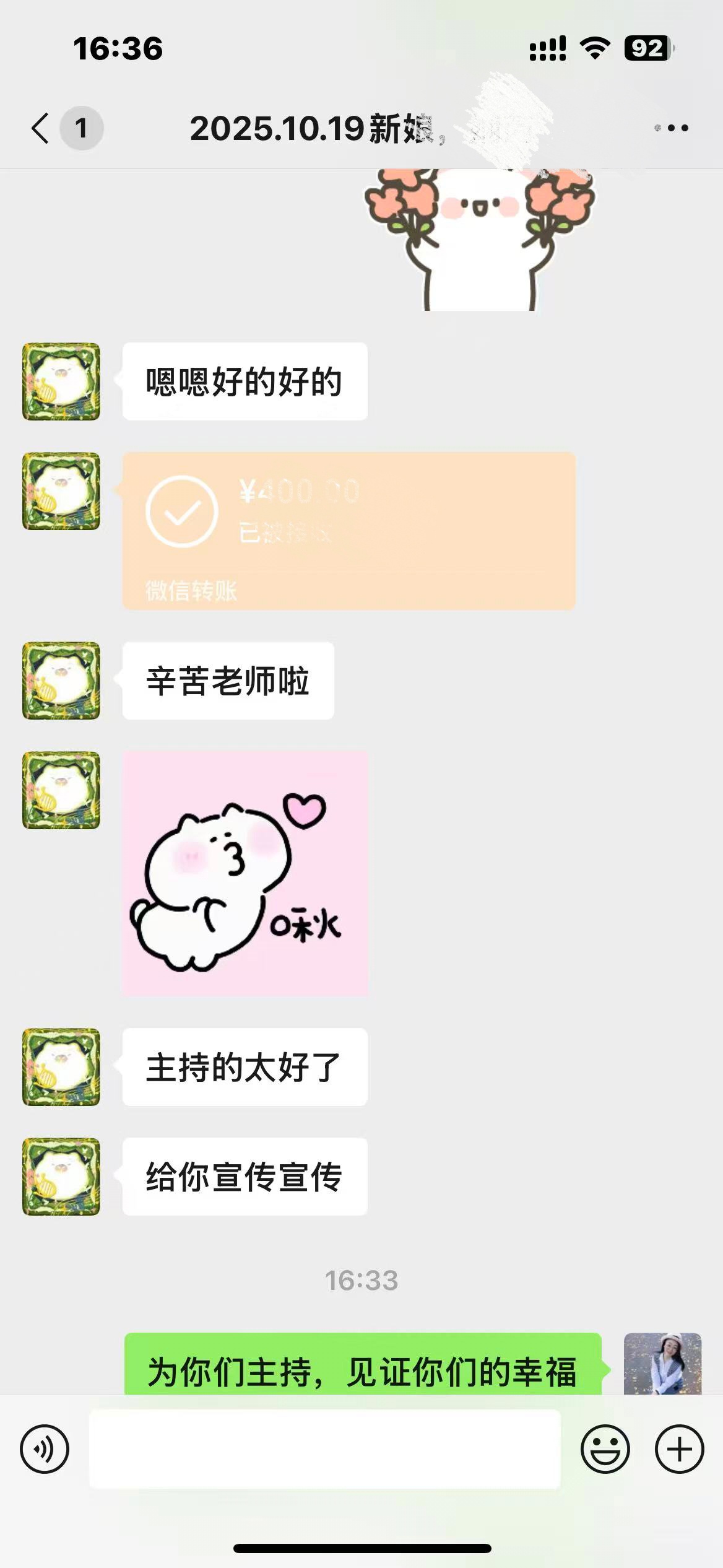 新娘评价:主持人老师节奏和氛围以及时间把控能力很强[玫瑰]