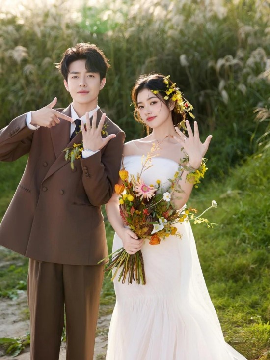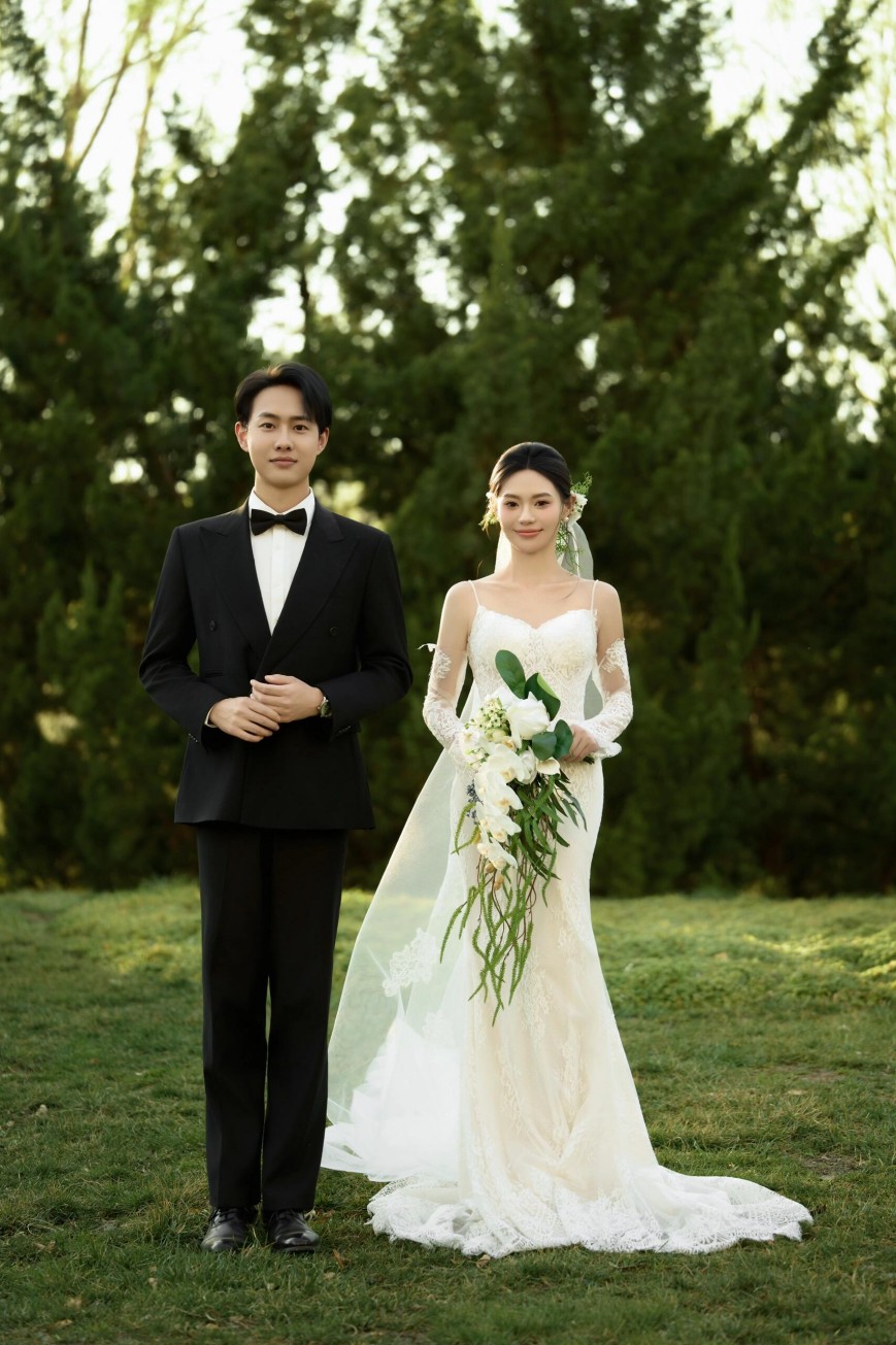 森系草坪婚纱照~阳光和爱都穿在身上的松弛感