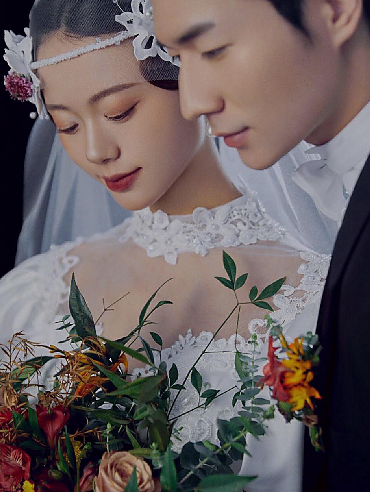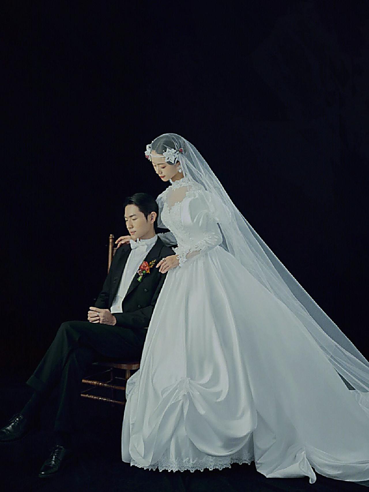 黑纱婚照天花板,尽显女王神态,神秘又浪漫