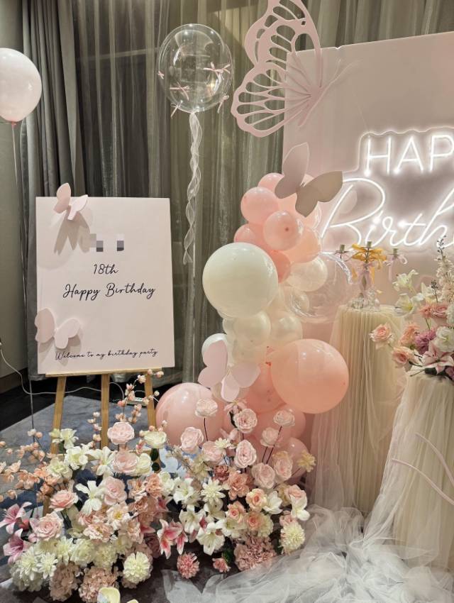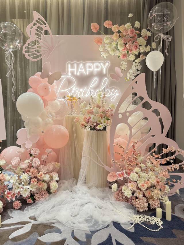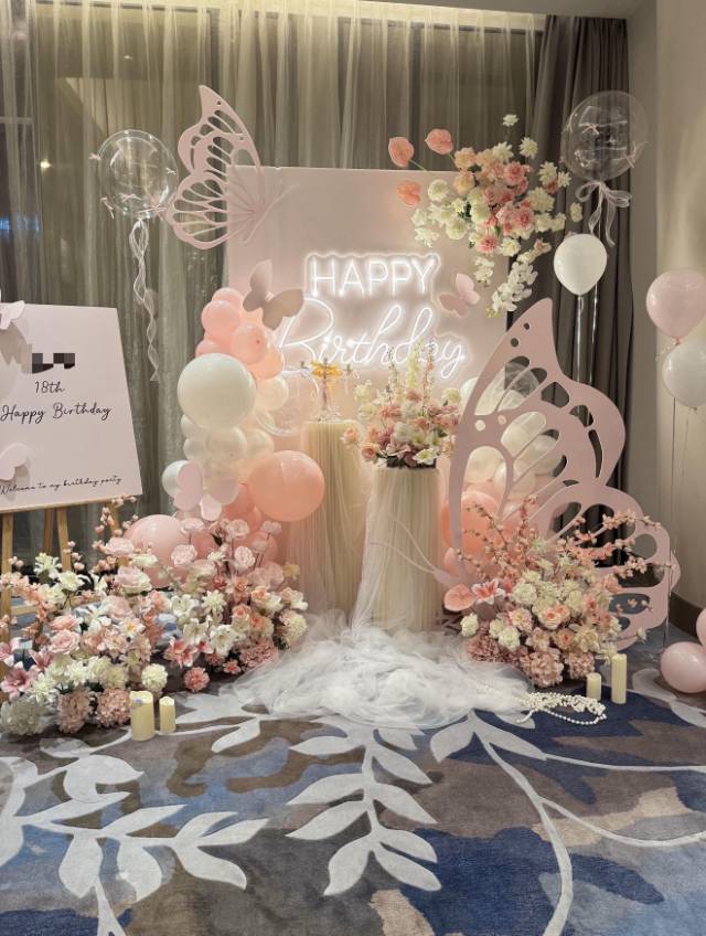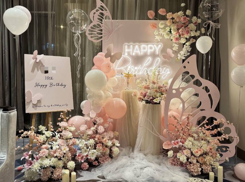 办的18岁生日宴选了这家布置,粉白蝴蝶搭配鲜花气球,清新又精致,朋友都夸很有氛围感,性价比也不错,很满意~