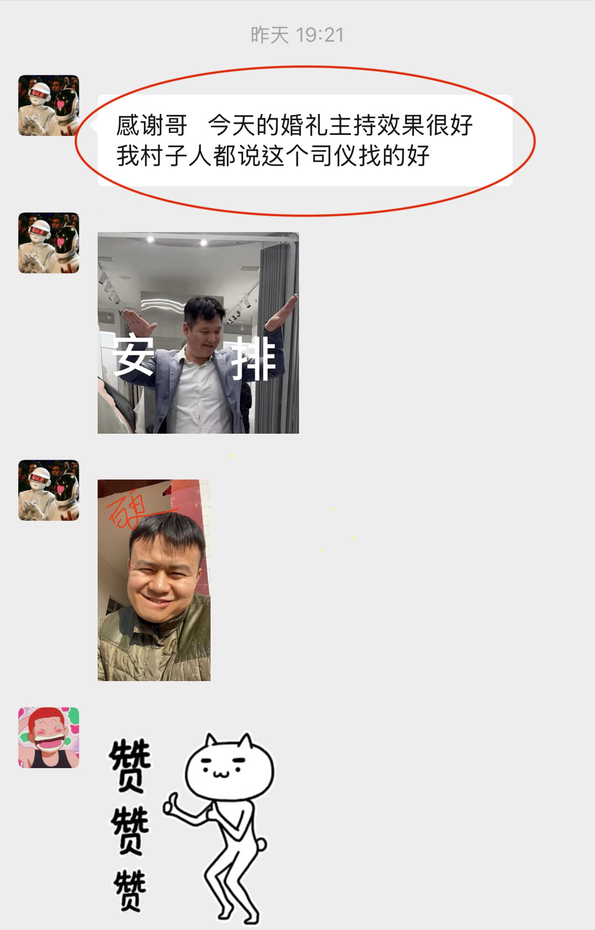 半年前确定了档期,新人很满意主持效果说氛围控场都很不错。对主持非常满意。感谢新人的信任。