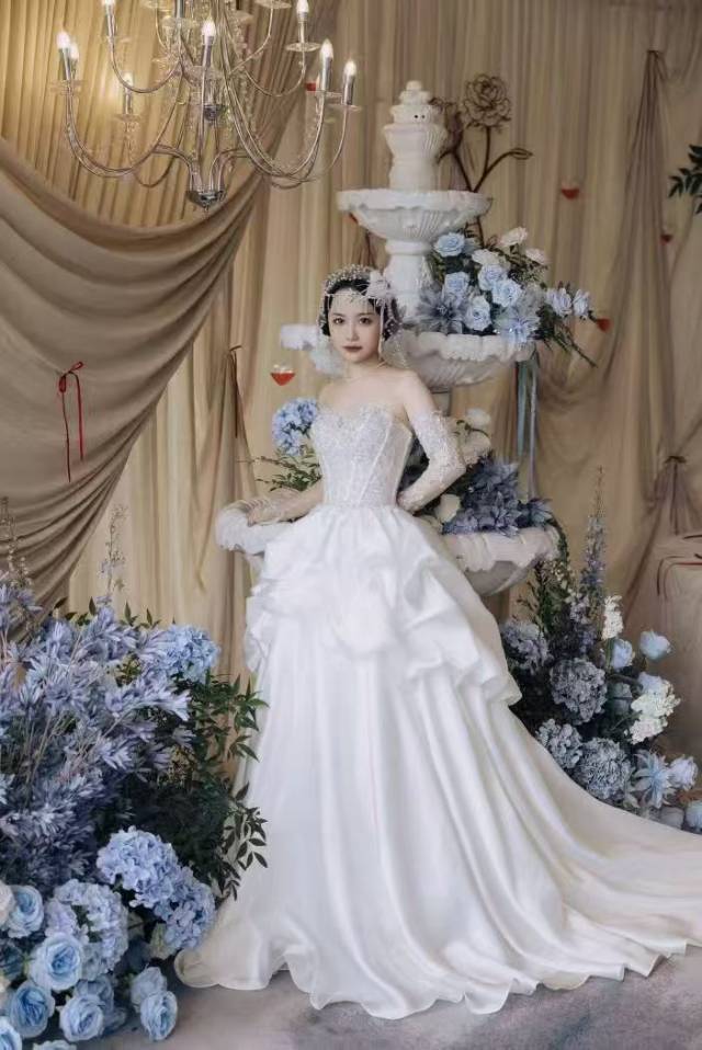 【白芷婚纱】抹胸缎面婚纱
