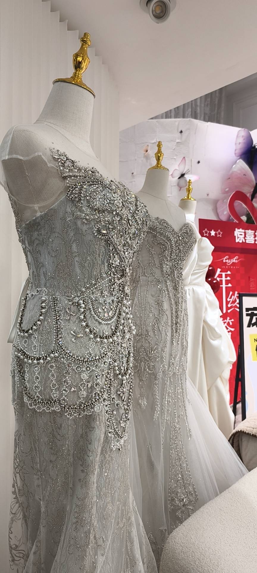 超治愈的试纱体验!店铺环境干净整洁,婚纱分区清晰,款式新颖又齐全,中式西式都有,挑到眼花缭乱~礼服师审美在线,精准拿捏我的喜好,推荐的几款都长在我的心巴上,试穿过程全程陪伴,温柔又专业,试完直接定下,幸福感爆棚,必须给满分好评~