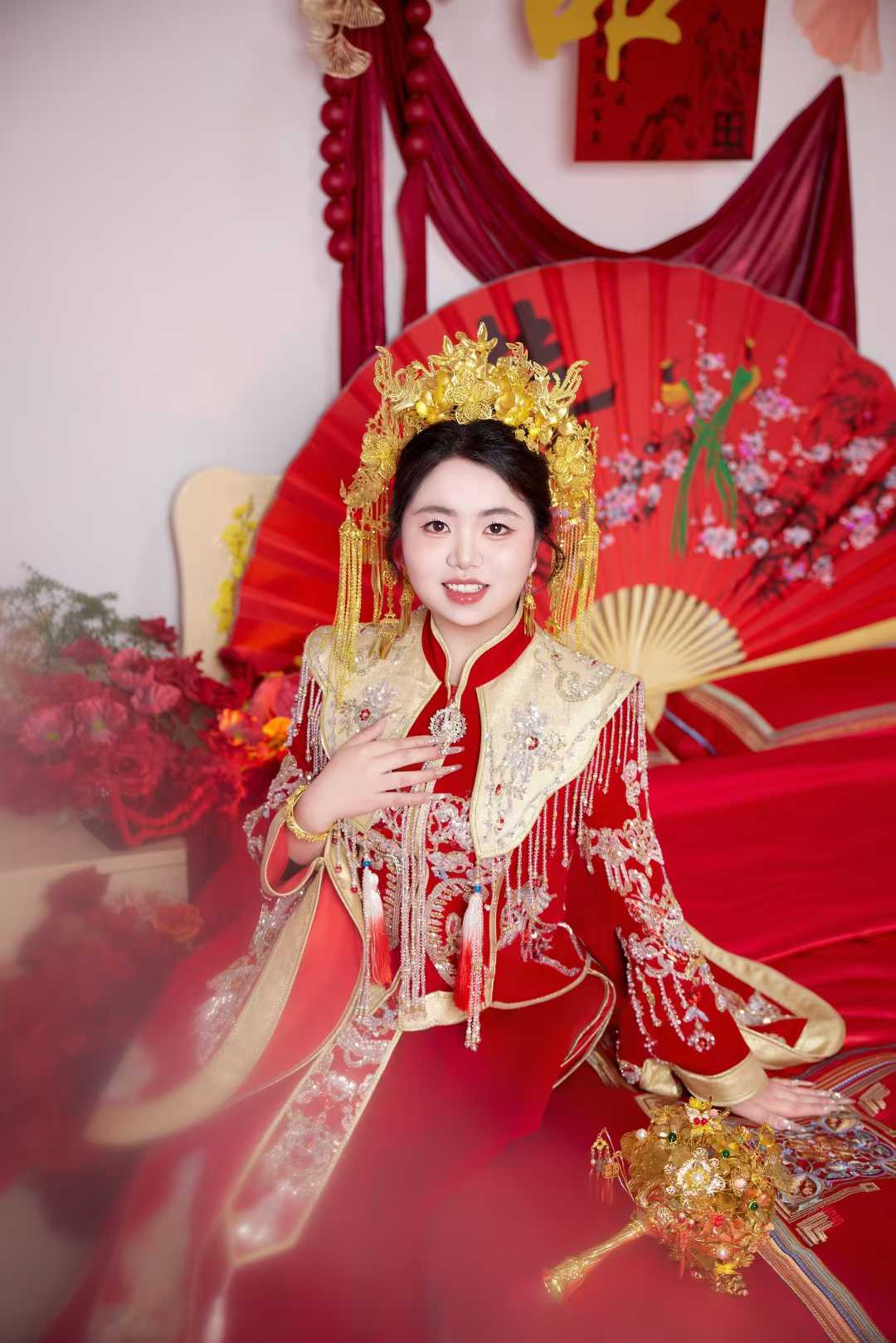 小姐姐很喜欢这种风格的秀禾,正好我们店刚到的新款约过来试穿,一眼相中,果然自己喜欢的就是蕞好的,非常出片好看。