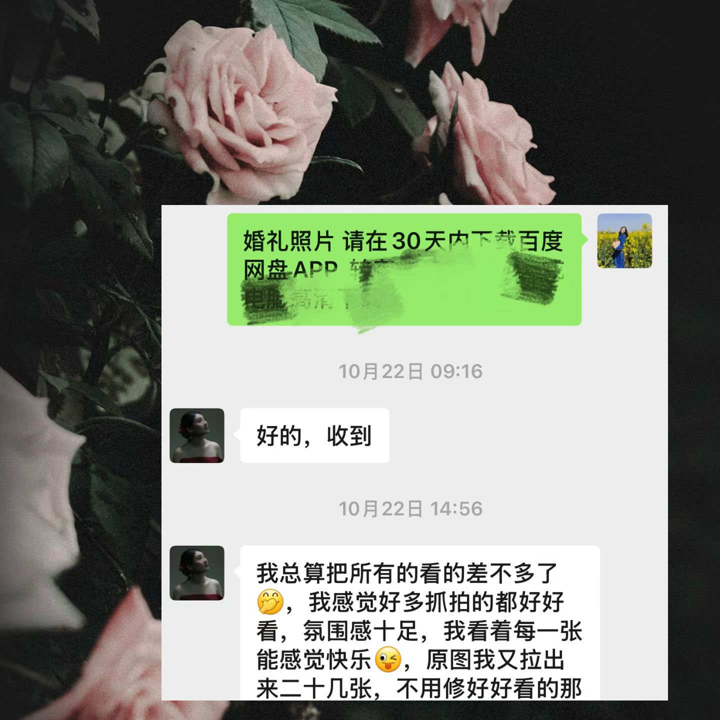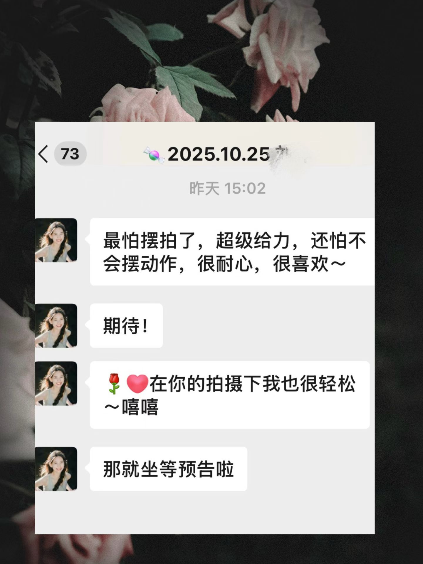 新人很爽快 看了我线上的客片就私信预定了 谢谢喜欢