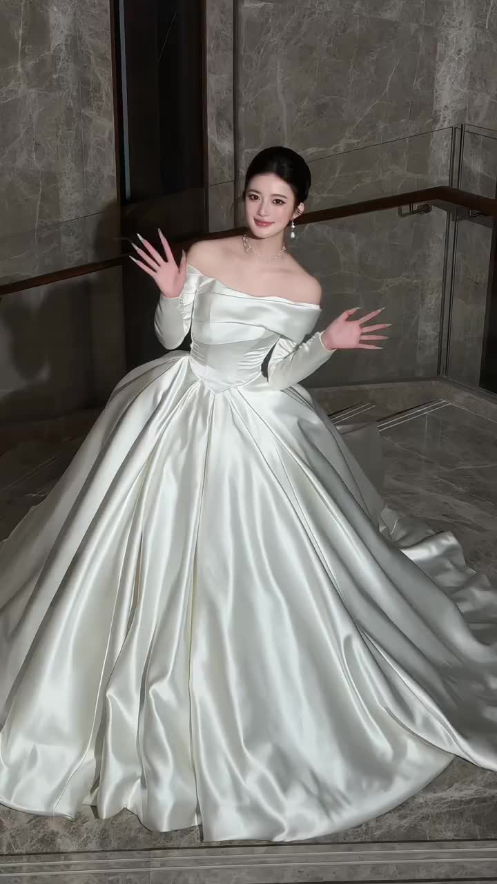 缎面婚纱的高级,是任何婚纱都替代