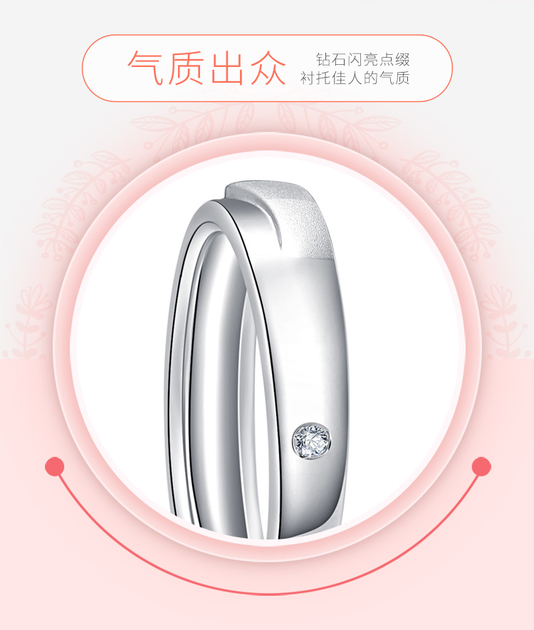 六福珠宝爱恒久系列「情投意合」18K金钻石对戒女
