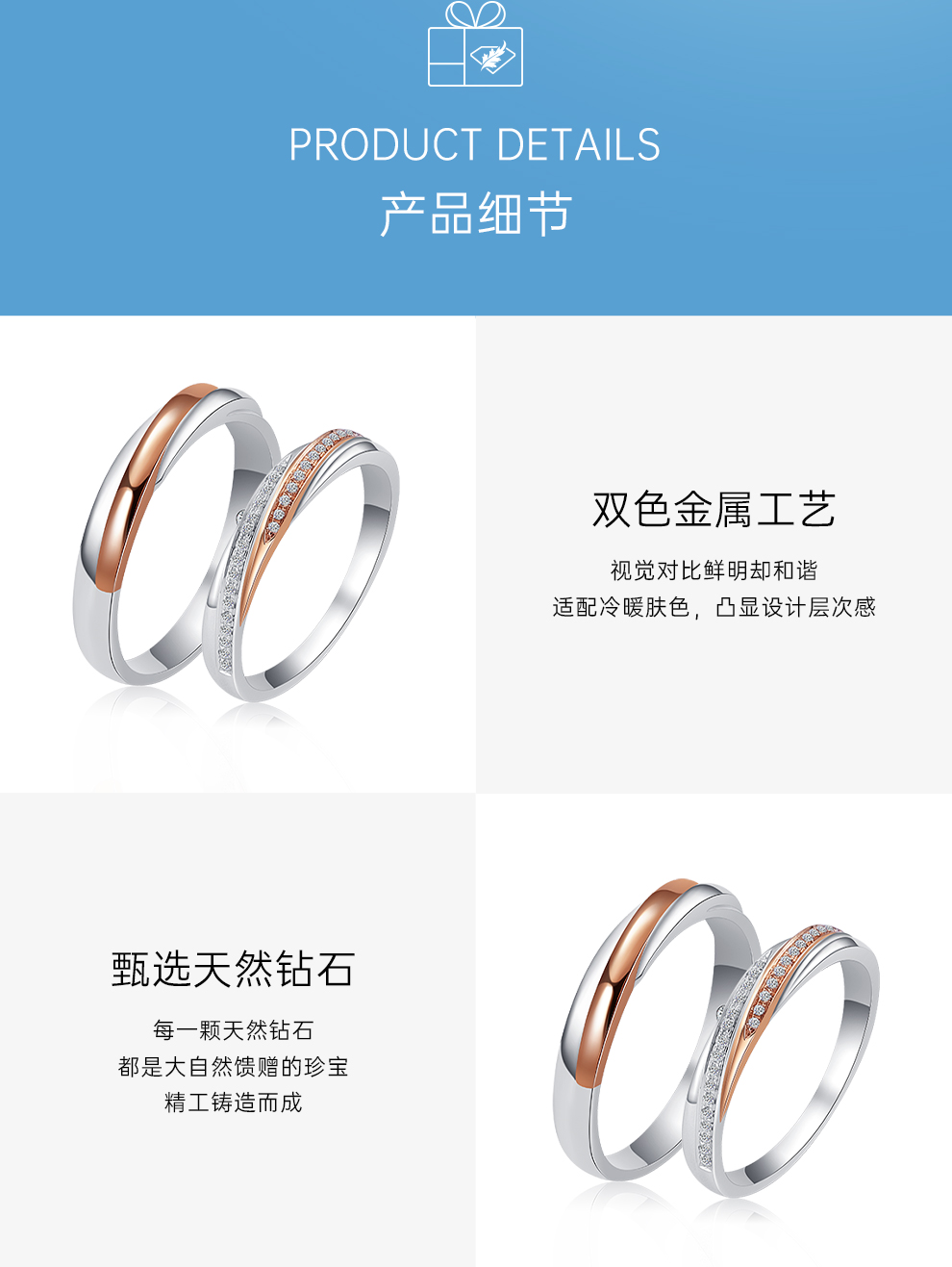 瑞恩18K金天然钻石戒指遇见系列情侣戒RL029